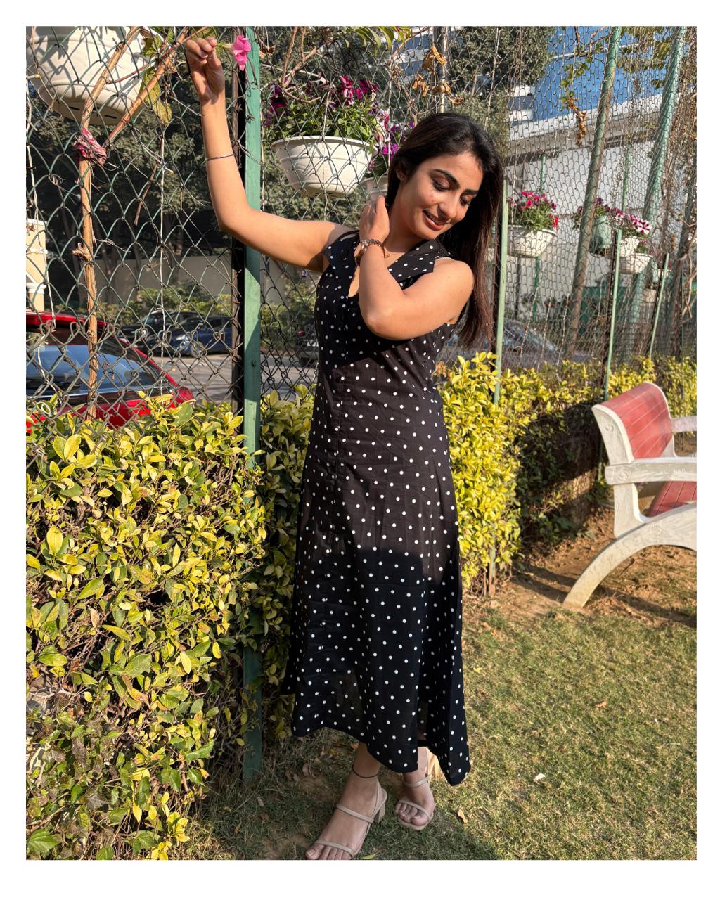 A playful yet polished cotton dress with timeless polka dots. Designed for comfort with just the right touch of sophistication.